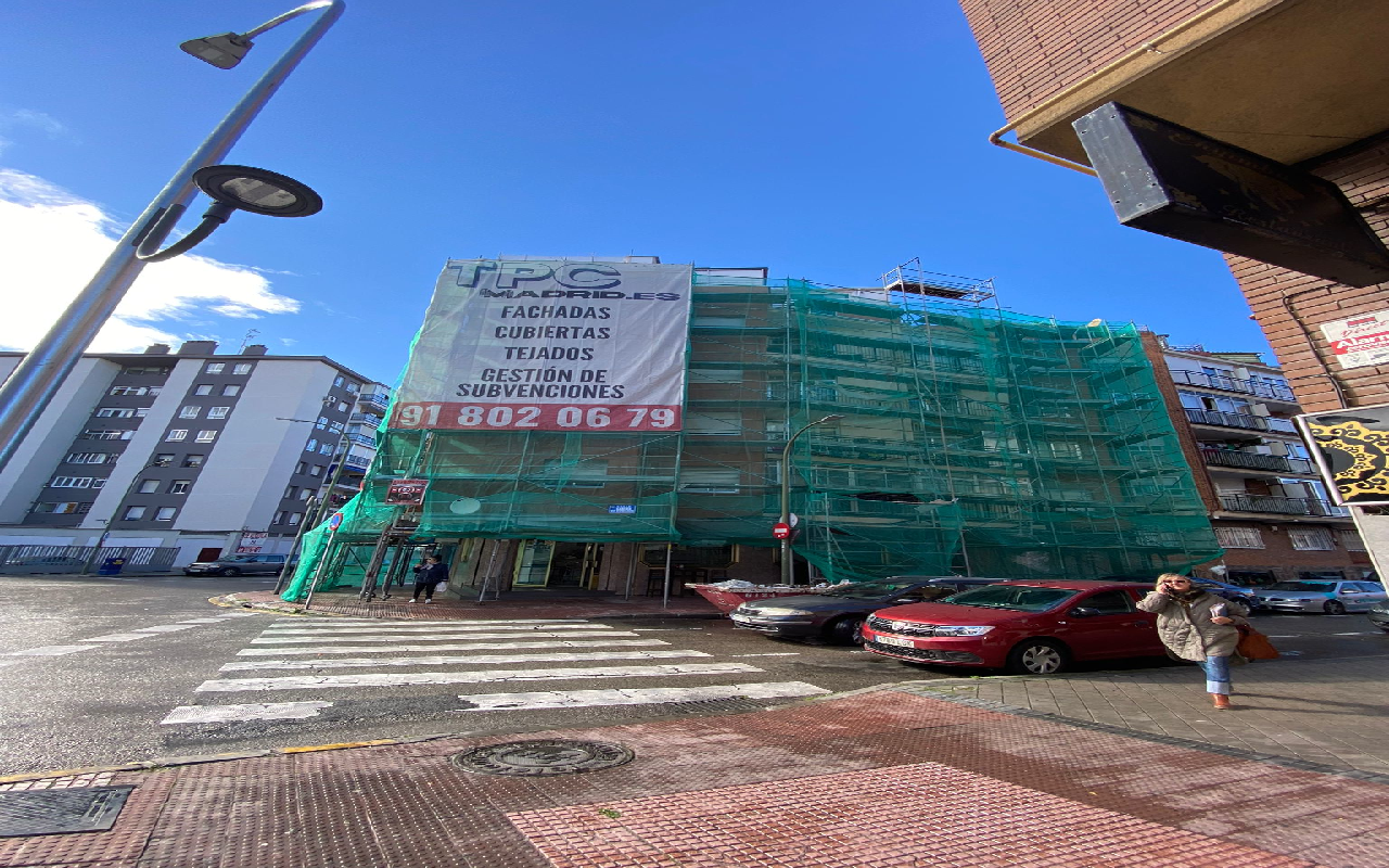 En este trabajo se ha instalado un sistema de aislamiento térmico exterior en la fachada, mediante placas de poliestireno expandido (EPS) estabilizadas con grafito de 80 mm de espesor. Además, se ha incorporado un sistema cortafuego compuesto por paneles rígidos de roca volcánica, con clasificación de resistencia al fuego clase A1 y un espesor de 80 mm, colocados cada dos plantas.